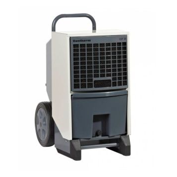 Для промышленных помещений разного назначения. Имеет встроенный гигростат. Отличается простотой транспортировки за счет наличия больших колес и ручки, регулируемой по высоте.